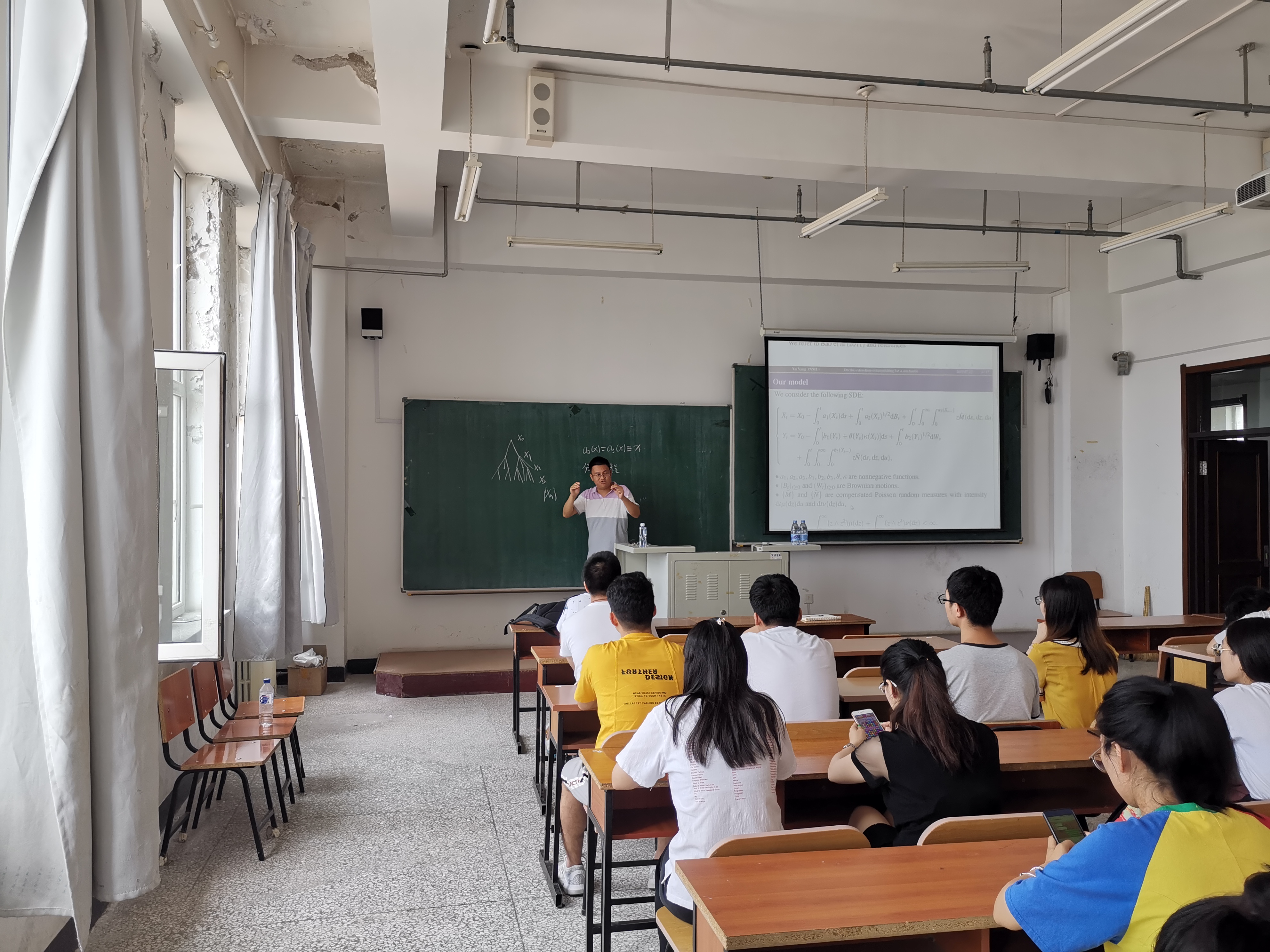 在报告中,杨叙教授从“On the extinction-extinguishing for a stochastic Lotka-Volterra type population dynamical system”具体的文章内容出发,介绍了所用到的一些基础的理论、一些文章细节上推敲的过程,和最后实验结果。用幽默风趣的语言展示了生物医学方面统计数学方法的应用,将自己的亲身经历和人生感悟分享给与会人员。报告结束后,与会人员踊跃提问,就感兴趣的问题与杨叙教授进行了广泛的讨论和交流,杨叙教授就提出的问题进行了详细的解答,分享了自己的心得。