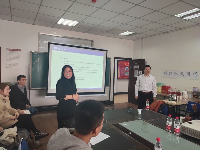 在报告中,艾教授首先基于大数据集的计算、储存及可视化问题,介绍了最优抽样技术的背景,简要回顾了广义线性模型的基本知识,并总结了前人就这一问题提出的最优抽样方案。艾教授考虑广义线性模型,使用Newton-Raphson方法获取出最大似然估计,还基于最佳子采样概率推导了子样本估计量的有限样本属性。由于最佳子采样概率取决于完整的数据估计,因此开发了自适应两步算法。利用该自适应算法建立了估计量的渐近正态性和最优性。最后,艾教授展示了不同模型设置下的模拟结果,与已有的方法相比,新方法的均方误差更小,且抽样用时更短。最后艾教授展示了两个实际数据的分析结果,也说明新方法的表现更好。