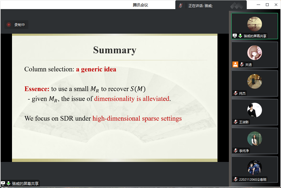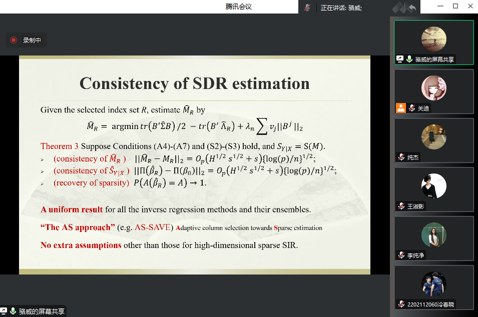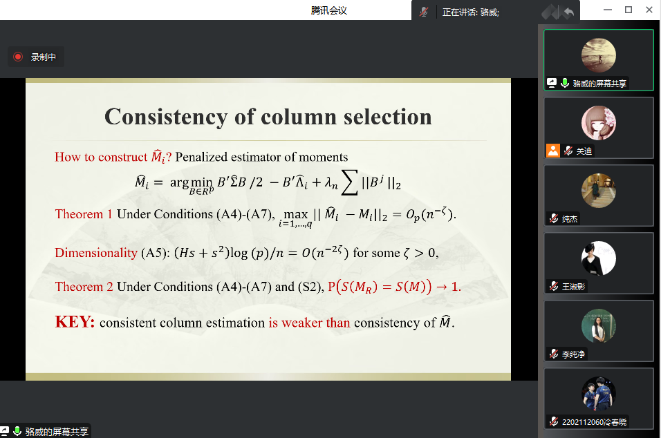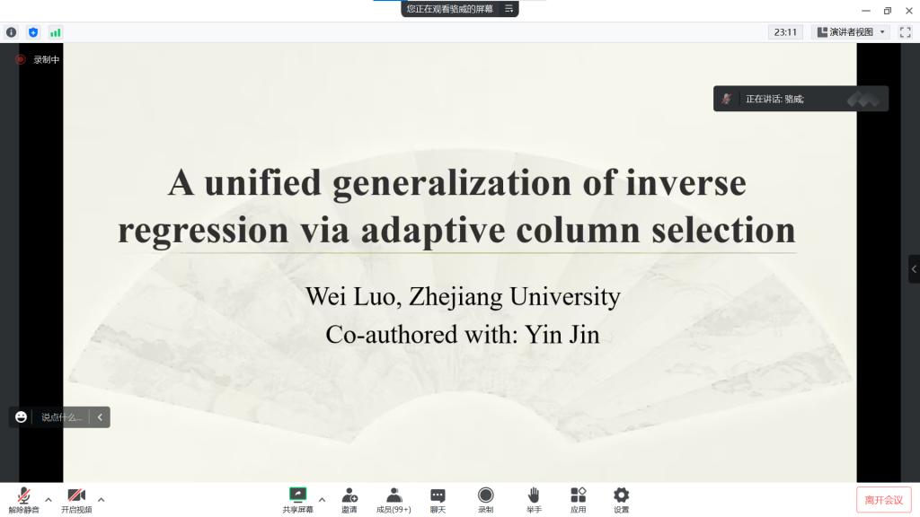 主办的报告——“A unified generalization of inverseregression via adaptive column selection”在腾讯会议线上举行,特别邀请骆威老师作为主讲人,基于骆威老师本人的研究以及工作经历,为Porn TV