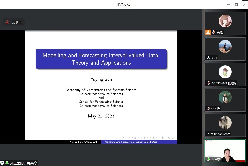 孙老师从区间数据的实际例子切入,详细介绍了区间数据的起源、发展、应用场景、建模策略和推断方法等问题,并指出了区间数据未来研究的发展方向。