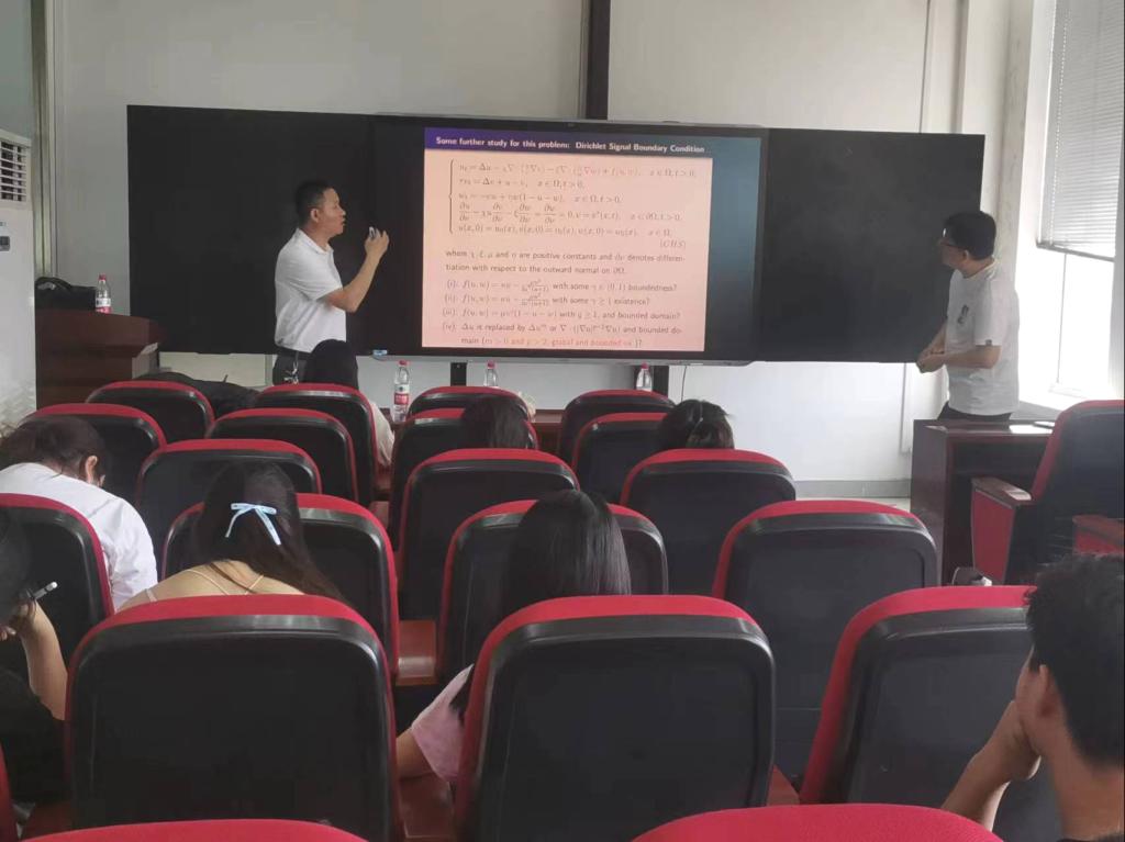本次学术交流会拓展了同学们的学术视野,也激发了同学们的学习热情,更加努力学习研究新的领域与方法,并使老师和同学们对具有重建机制的高维趋化-触觉趋化模型的全局存在性和有界性的相关知识有了更深的理解,聆听报告的师生均表示受益匪浅。