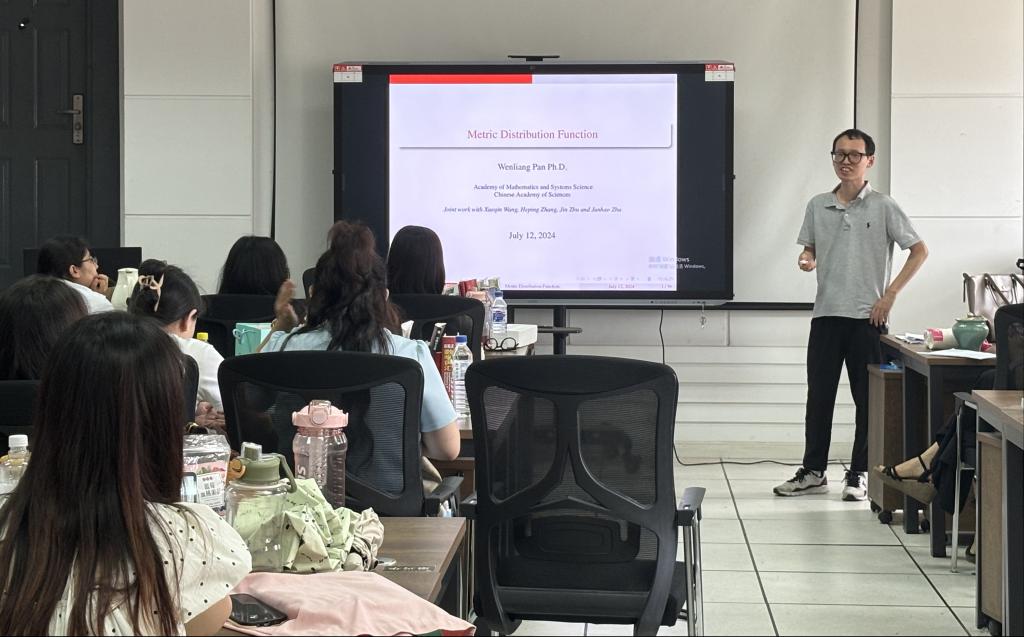(通讯员:关迪)2024年08月03日下午13:00,我院特邀中国科学院数学与系统科学研究院的潘文亮教授在南湖校区老图书馆四楼左侧研究生5-1学习室做学术报告,报告由学院院长王纯杰教授主持,本院部分研究生和部分老师参加了本次学术报告会。