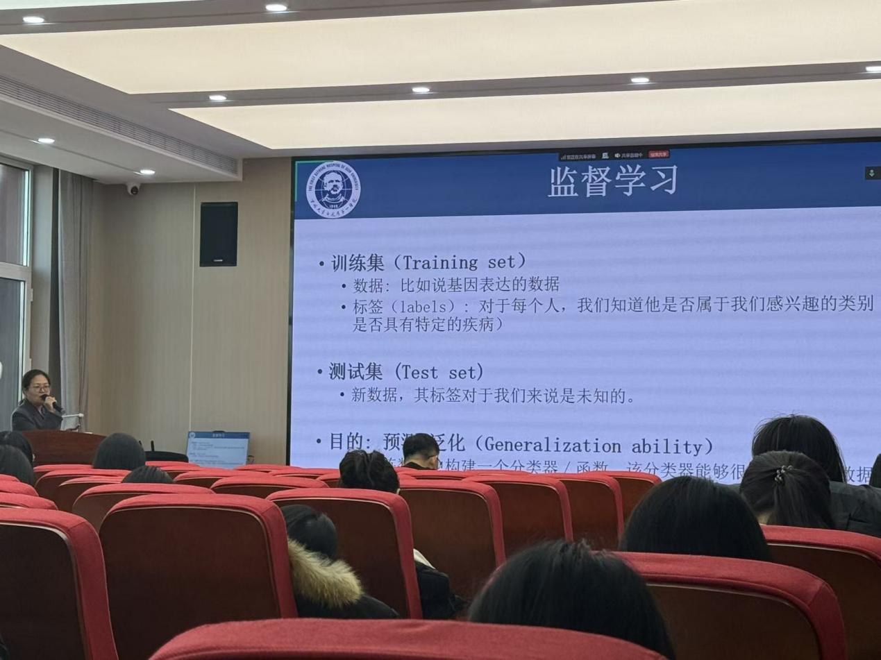 在接下来的报告中,田教授详尽地阐述了支持向量机,其核心逻辑是在正确分类前提下最大化间隔宽度。理想线性可分场景下,通过构建超平面使两类样本分别位于两侧,超平面两侧最近样本即为 “支持向量”;面对线性不可分问题时,采用 “核函数” 实现升维转换,比如将二维中无法分离的样本映射到三维空间找到分离超平面,再投影回二维形成非线性边界,PPT 中实例显示升维后模型准确率可从 75% 提升至 100%。同时,SVM 性能评估需区分 “训练误差”(训练集表现,如 0/18)与 “测试误差”(新数据泛化能力,如 3/18),以此避免过拟合。