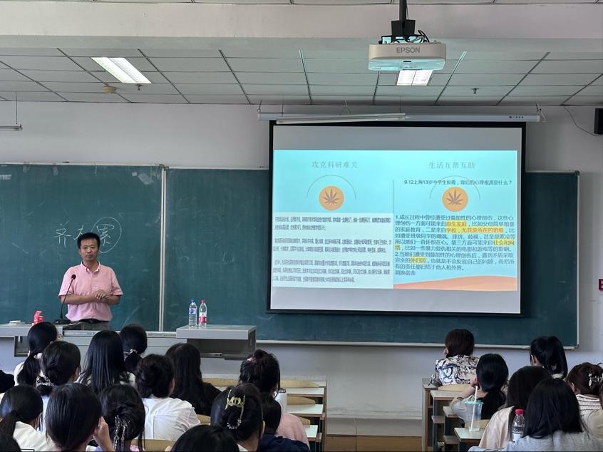 赵君围绕和谐与健康的标准、如何释放压力、适应研究生生活等方面进行讲授。他从如何促进同学之间的交流出发,以“互相捏肩”小游戏展开,带领同学们深刻了解交流的重要性。并将数学知识与心理健康相结合,向同学们剖析如何通过自我调节,具备良好的心理素质。他通过丰富的案例,为大家讲解高校常见心理问题的识别,详细分析了人际关系以及生活中常见的困惑和处理方式,引导大家学会了解同学的内心世界和如何释放压力。他提出心理健康是健康的重要组成部分,健康的身心是每个人追求美好生活的前提。在研究生阶段,当我们在面对各种各样的压力,如科研压力、经济压力、人际关系压力、就业压力等,同学们应该要学会像泄洪一样逐渐将压力释放,积极参与学校、学院组织的活动,学习生活劳逸结合按时休息。