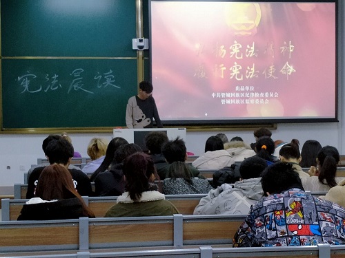 于2020年12月7日在主楼124教室举行“宪法晨读”活动,2019、2020级全体班委及学院团学组织成员参加,本次活动由团委组织部思想引领中心副主任朱爱成主持。