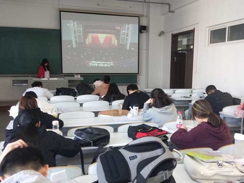 团委于2019年5月7日组织2016级、2017级、2018级各班同学观看习近平总书记在纪念五四运动100周年大会上发表重要讲话的相关视频。