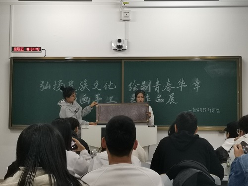 于2020年11月27日下午六点半在北湖东区主楼223教室举办“弘扬民族文化,绘制青春华章”手工艺品书画展。此次活动由200801班张斯琴主持,2019、2020级手工艺爱好者参加本次活动。