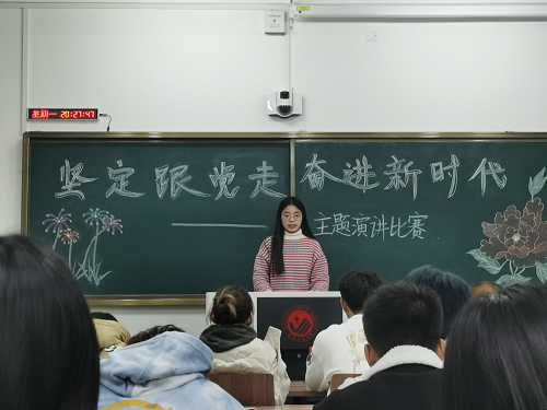 于2020年11月16日在北湖东区主楼224教室举行“坚定跟党走,奋进新时代”主题演讲比赛。王一、李佳彬、桑瑞敏、段富山等11名2020、2019级学生参加此次活动,2020级段富山和宋雅瑞主持。