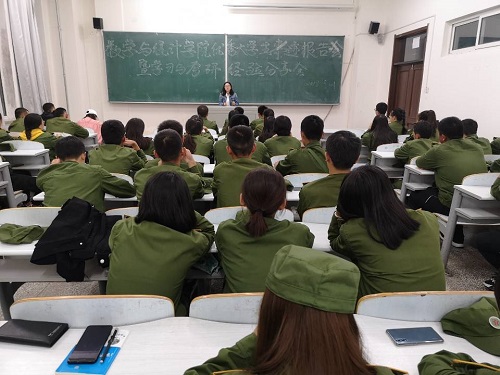 会议开始,郑老师向同学们详细地介绍了四名优秀大学生代表在学习和工作中取得的优异成绩,并鼓励同学们向优秀大学生学习。四名优秀大学生代表也详细地向新生们分享了自己的学习心路历程,传递着榜样的力量。我院统计学研究生李会贤告诉18级的新同学们,要积极参加学科竞赛、社团活动,培养团队协作的能力。大学不同于高中,在学习上要拥有自制力和恒心,学好基础课,工作时尽全力,学习时高效率,将大学四年过的有意义。研究生王强进告诉同学们,除了要好好学习,更要培养个人独立的技能,让自己有思想有担当。作为班委,要以身作则,认真学习的同时,对同学负责,对学院负责。谈及考研,他向同学们阐述自己的考研初心是为了掌握更多的本领,积累更大的经验。读书是长远而必要的一件事,不是为了升官发财,而是为了成为更好的自己。校十佳优秀大学生张诗羽结合自己的经历从学习、工作、娱乐三方面向同学们分享学习心得:任何事情都应该大胆去尝试,享受这个参与过程。由我院成功考入东北师范大学的研究生闫光友建议同学们从自身实际出发,尽早确定奋斗目标。他向同学们展示了“考研学习一天计划表”,并表示考研是辛苦的,也是孤独的,但却是一个让自己成长的过程,每一天都能感觉自己离目标越来越近。天道酬勤,有心人终不负。