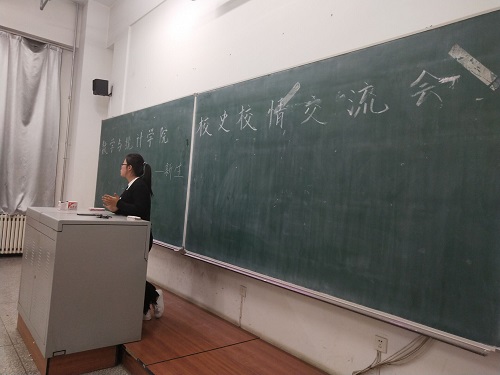 团委讯 通讯员:崔仕贤)为了让我院新生同学们更充分地了解学校的发展历程,更加明确地孕育母校情怀。2018年9月9日,在林园校区教图楼111举行了校史校情交流会,会议由院团委副秘书长崔仕贤同学主持。