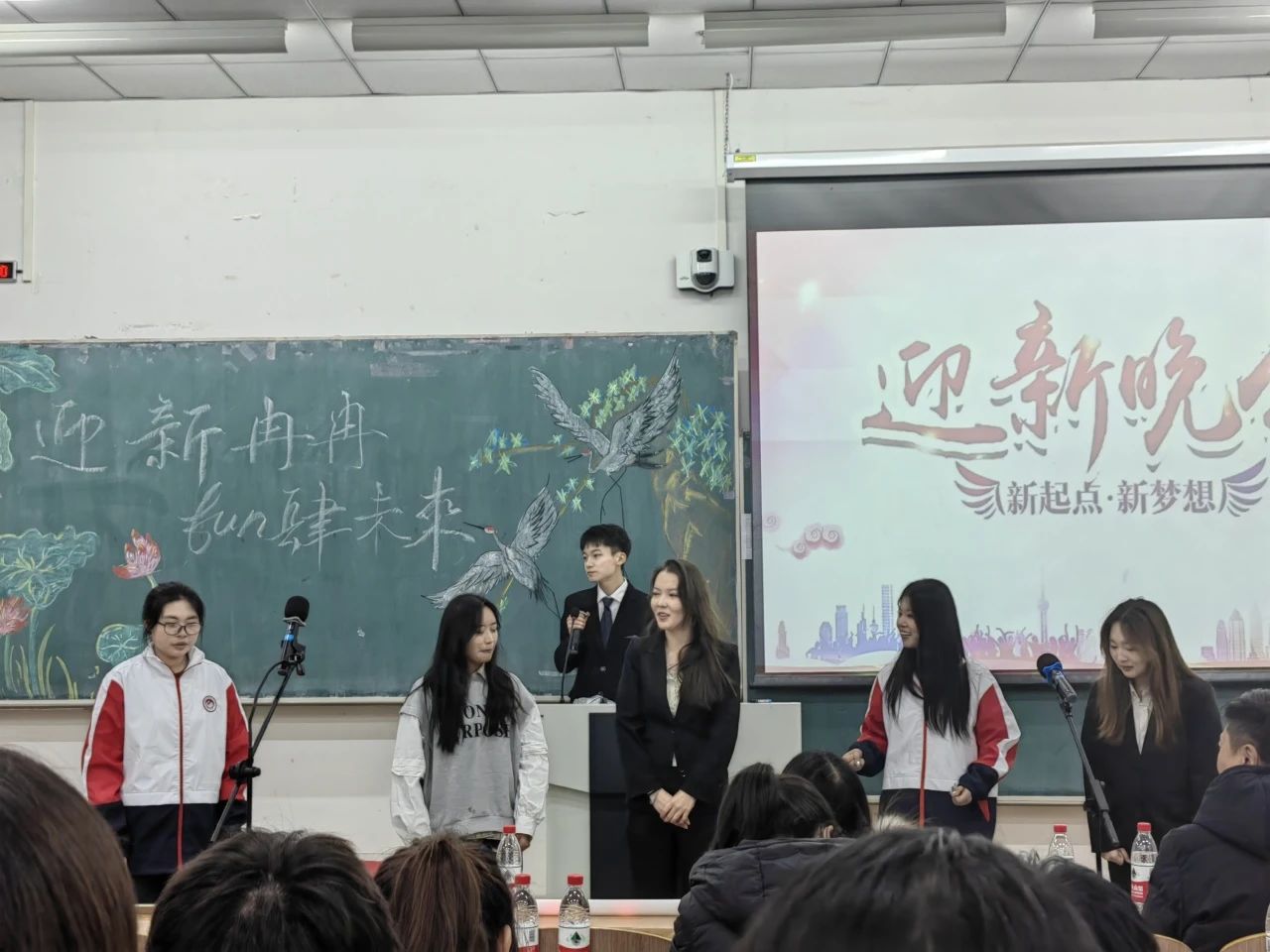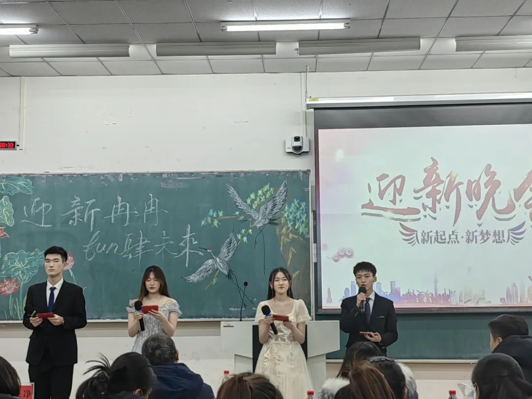 研究生代表、大二学生代表以及全体大一学生参与本次晚会。本次晚会由迟雯博、侯佳琪、陈青言、赵子茉担任主持。