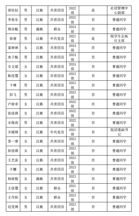 学生会第五学生代表大会代表66名,符合代表条件,现予以公示。公示期内如有异议请及时与老师反映。