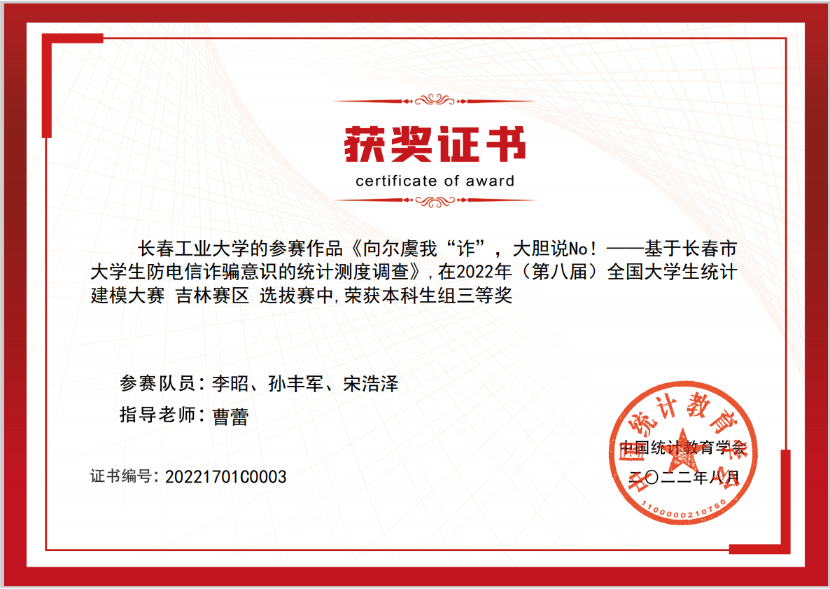 关于公布2025年(第十一届)全国大学生统计建模大赛吉林赛区Porn TV 晋级省赛名单的通知