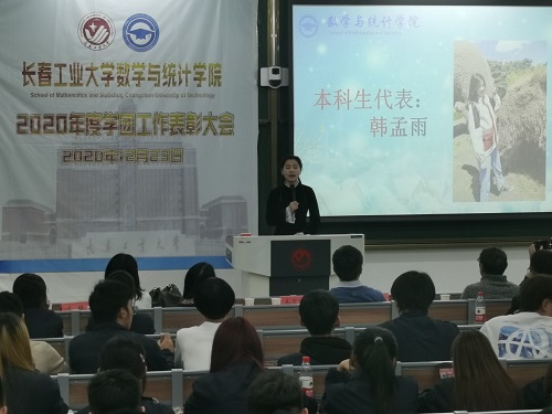 本科生韩孟雨同学和研究生李会贤同学分别代表受表彰的优秀个人发言。韩孟雨向同学们分享了学习经验,突出强调了英语学习的重要性,为学生提供了学习方法的建议,向全体师生表达了感谢与祝愿;李会贤分享了自己在本科以及研究生的经历,倡导提升学习热情,扎实基础知识,并鼓励同学们积极考研。