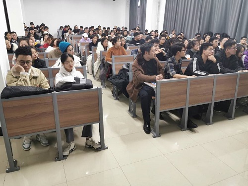 在报告会中,王新民老师指出,如何做一个对社会有价值的人,就是提升自身存在的价值,形象地将价值比做成一个以知识、素质、能力为三条边的三角形,并由“等边三角形的面积最大”这一数学理论教导学生们若想成长为一个成功有价值的人,就要将三者均衡发展;接着,王老师以自己的学业经历为例,向学生们详细地讲述一个人要想走向成功,必须明白成功的必要条件是“简单”、“坚持”、“爱”五个字。王老师结合专业课中一些令学生难以理解的复杂公式作例,用幽默风趣的方式将其转变成通俗易懂的理论。王老师旁征博引,讲到每个人都有欲望,但是欲望也有极限,欲望值不要过高也不要过低,并且要控制在自己的能力范围内。报告会的最后,学生们积极向王新民老师提出自己在学习生活中产生的疑惑,王新民老师耐心详细地解答了学生的问题。