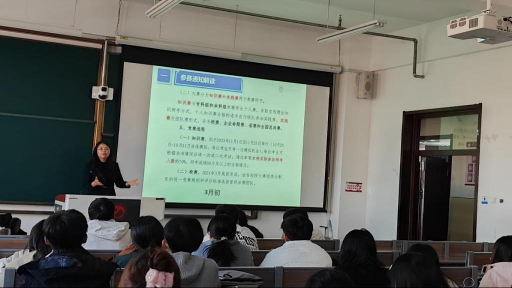 此次会议内容主要包括参赛通知解读、网考注意事项、实践赛组队、如何选题、如何撰写报告五部分。旨在帮助同学们了解大赛的参赛流程、注意事项,帮助同学们理清思路,如何正确运用调查研究的方法和技能,提高大赛作品质量。