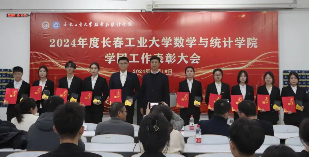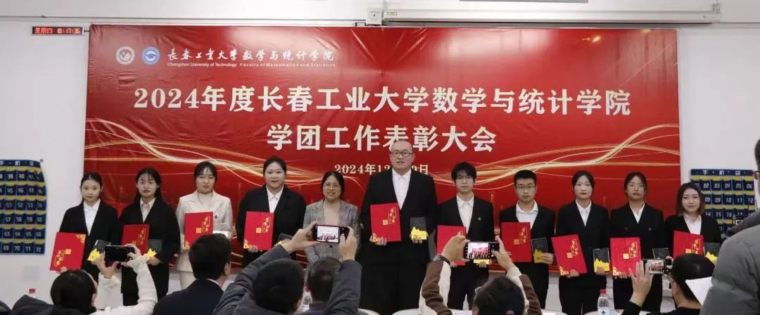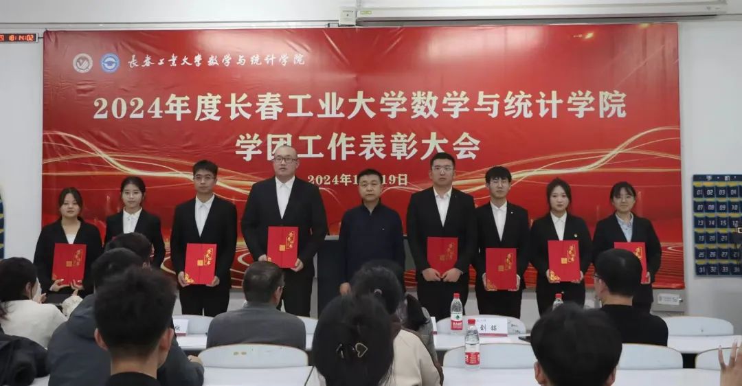 团委讯(通讯员:唐梦然 赵子茉)数学与统计学院于2024年12月19日在艺术楼二楼阶梯教室隆重举行2024年度学团工作表彰大会。学院党委书记王丹、院长王纯杰、副院长刘铭、党委副书记刘晓欣、副院长杨凯、党委副处级专职组织员应艳、统计系党支部书记袁晓惠、应用数学系副主任夏超以及学院学生工作办公室全体辅导员出席了本次大会。会议由学院团委书记庄园主持,获奖学生代表及2023级和2024级学生代表参加会议。