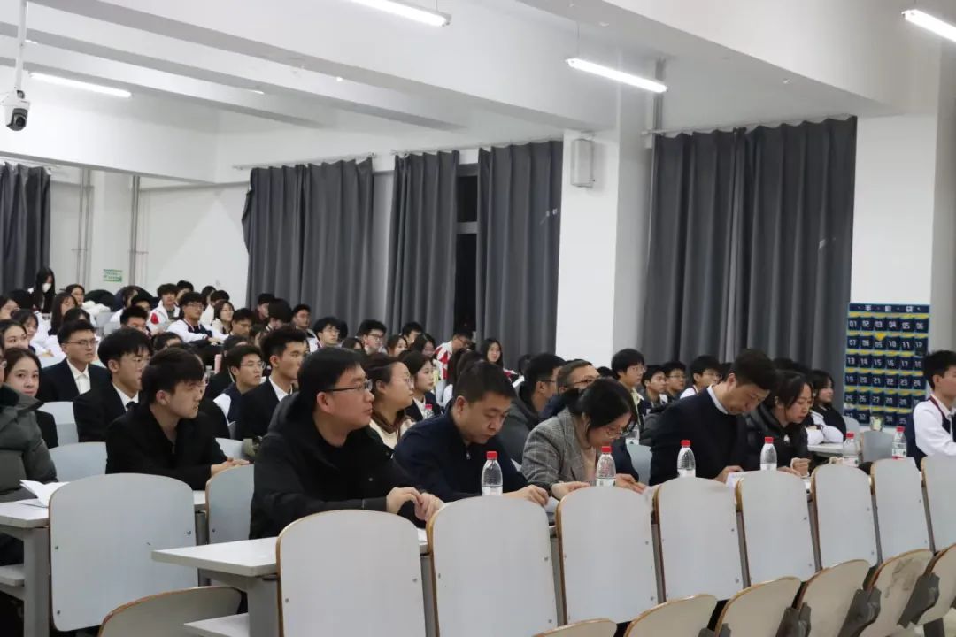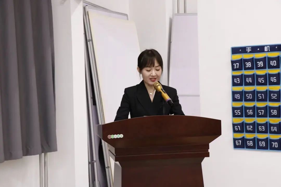 五、院长王纯杰致辞。她从学院近年来的发展、师资力量及学科建设方面向同学们讲述了学院的优势及未来奋斗的方向,鼓励同学们积极参加学术竞赛,备战考研,提高学术水平和专业能力。还给同学们分享了许多优秀学长学姐的就业情况,鼓励同学们培养进取创新思维,不断探索“数学+”未来发展新模式,践行知行合一思想,挺膺青春担当,为社会发展注入青春力量。