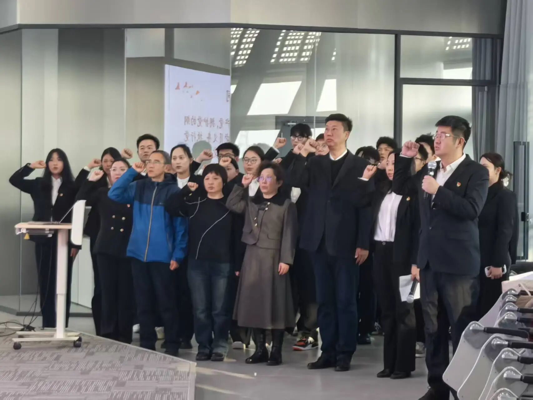 最后,与会党员由领誓人白海洋带领重温入党誓词。