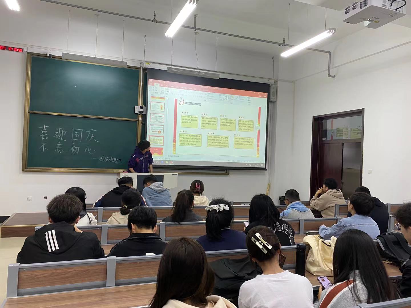 团委组织2020级和2021级各班团支部委员们在北湖东区主楼128教室开展“学习筑梦”活动——“喜迎国庆,不忘初心”主题团会。本次团会由200802班团支书颜兴洲主持。