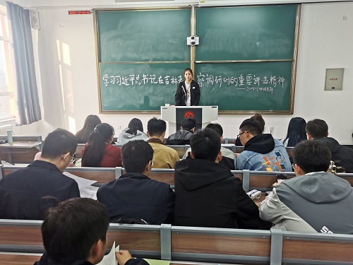 活动中,190801班团支书张越向同学们总结了习近平总书记考察吉林的重大意义。在决胜全面建成小康社会、开启全面建设社会主义现代化国家新征程的关键节点,习近平总书记专程到吉林考察调研,充分体现了对吉林工作的高度重视,充分体现了对吉林人民的牵挂厚爱,是吉林振兴发展进程中一件具有里程碑意义的大事。