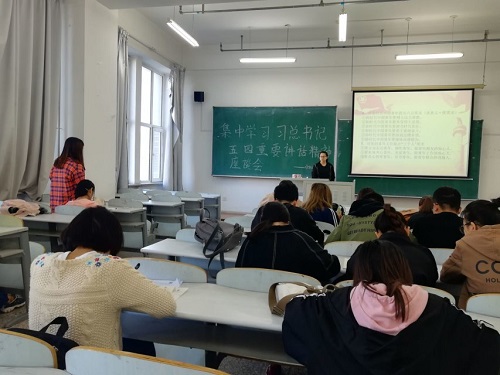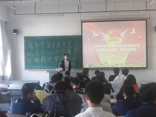 团委于2019年5月22日开展集中学习习近平总书记在“纪念五四运动100周年重要讲话精神”的交流会。会议由17级、18级同学全员参加。17级、18级各班团支书主持此次交流会。