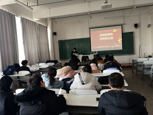 林园校区教图楼613教室组织了2018年第六期党课理论培训。本次培训由学生会主席马壮主讲,院本科和研究生的21名入党积极分子参加本次党课学习。
