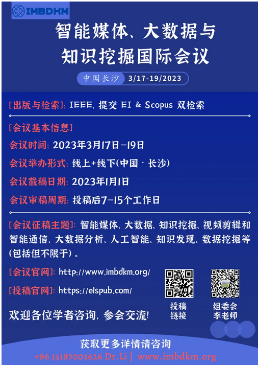 智能媒体、大数据与知识挖掘国际会议(International Conference on Intelligent Media, Big Data and Knowledge Mining)